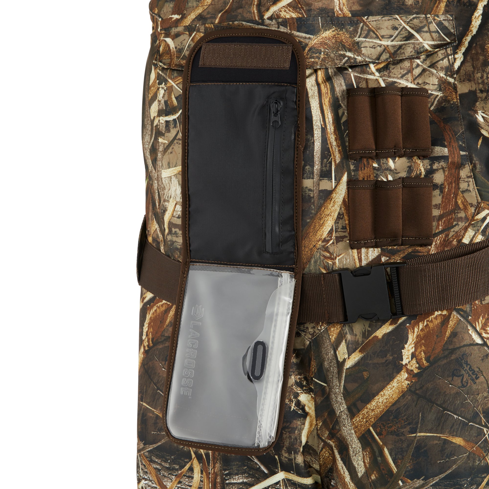 If your best days are spent hip deep in the water blowing a duck call, we created these premium chest waders for you. The Alpha Agility Select is built on the same platform as our popular Alpha Agility knee boots to give you the most lightweight and comfortable wader boot possible. A drop top front gets you in and out of the waders with ease, and a quilted liner zips out so you can wear them when the weather warms up. A waterproof pocket with electrostatic technology lets you check the weather or migration stats without having to take your phone out of the sleeve.