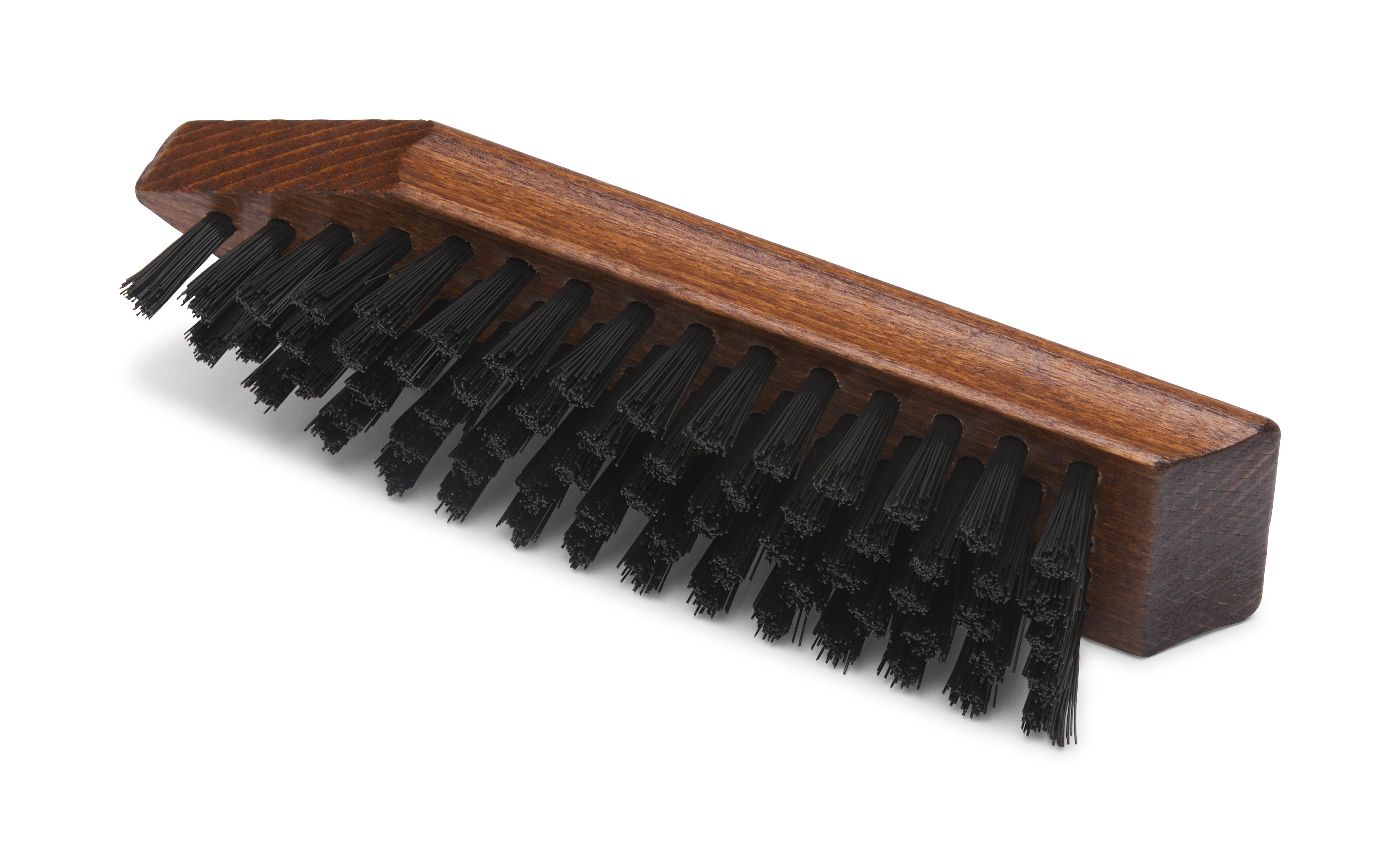 It might look like a standard brush at first glance, but the sturdy nylon bristles are just one of the three cleaning tools on our cleaning brush. While those bristles will help remove dirt and debris, the pointed leading edge cleans welts and outsoles and the beveled trailing edge scrapes off mud and dirt.