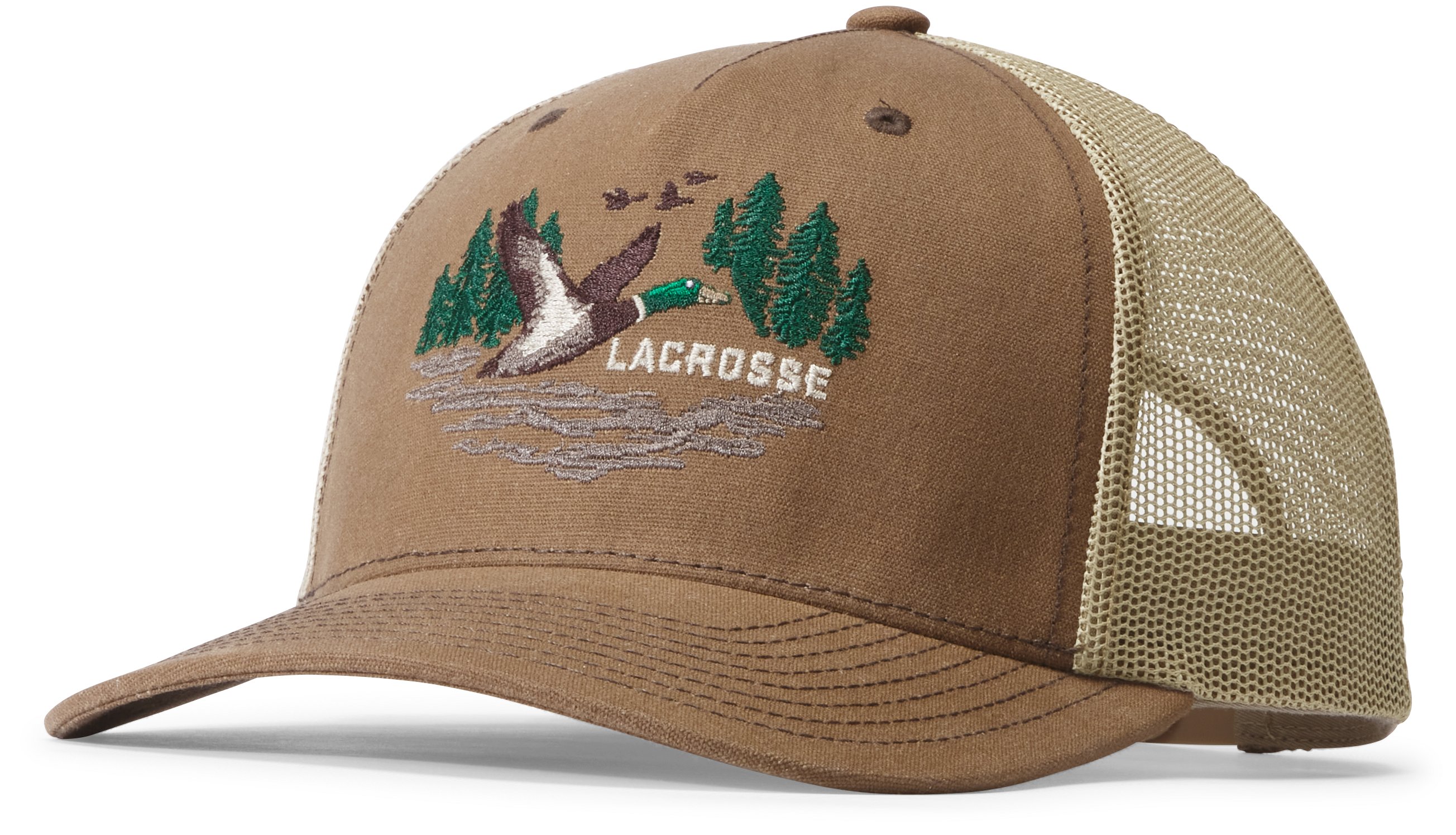 LaCrosse teamed up with Richardson to create this classic trucker hat. The 112 silhouette is a fan favorite and Richardson's most popular design. This five panel design features a a retro-inspired mallard graphic on the front and an adjustable snapback closure on the back.